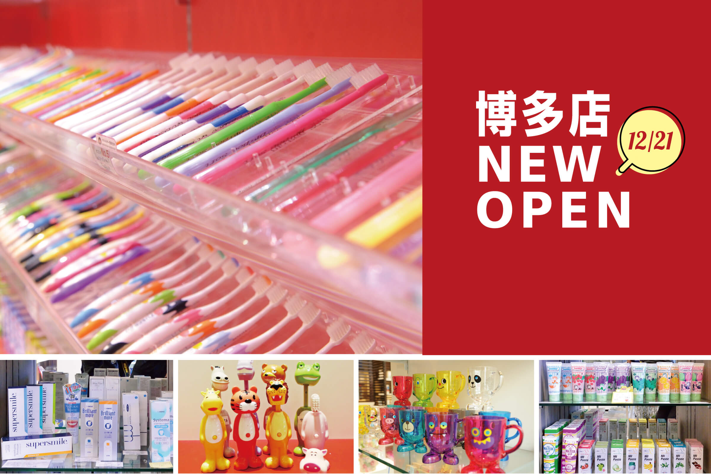 福岡センタービル地下2階に「博多店」オープン。博多駅地下街から直接アクセスできます! お出かけの際はもちろん、通勤通学のちょっとした時間にぜひお立ち寄りください。貴方にピッタリなデンタルケアグッズをご提案します。
